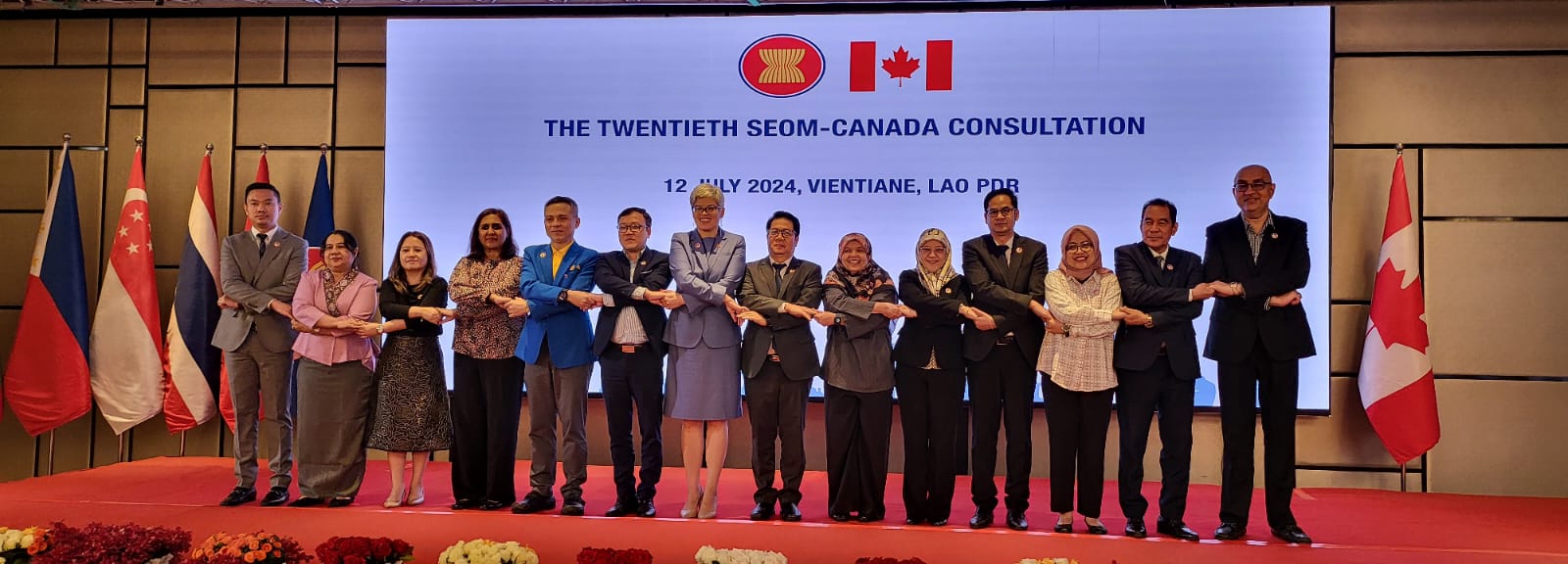 Deputy Secretary-General of ASEAN for ASEAN Economic Community, Satvinder Singh, attended the 20th SEOM-Canada Consultation on 12 July 2024 in Vientiane, Lao PDR, where the Meeting discussed the progress implementation of the Work Plan to Implement the ASEAN-Canada Joint Declaration on Trade and Investment 2021 – 2025, the progress in the ASEAN-Canada Free Trade Agreement (ACAFTA) Negotiations, Canada Indo-Pacific Strategies, and the preparations for the 13th AEM-Canada Consultation.